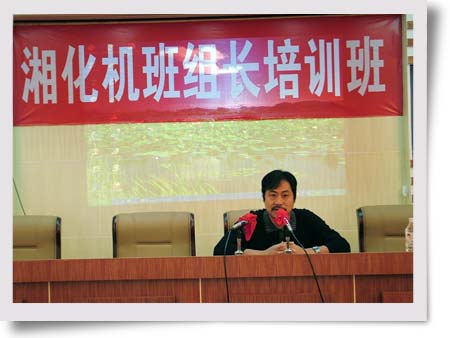 10月11日這一天,湖南湘東化工機械有限公司三樓培訓(xùn)室掌聲不斷、笑聲不斷,70余人的培訓(xùn)室坐的滿滿的,連過道里都坐滿了人,這里不是看電影,也不是聽報告,而是湘化機各分廠、分公司的基層班組長在這里聽培訓(xùn)課。